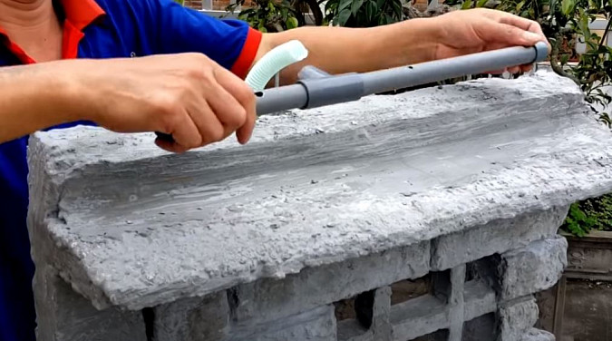 Výslednú nádobu pokryjeme cementovou zmesou a necháme ju dobre vyschnúť. Potom urobíme technickú dieru na hadicu od čerpadla.
